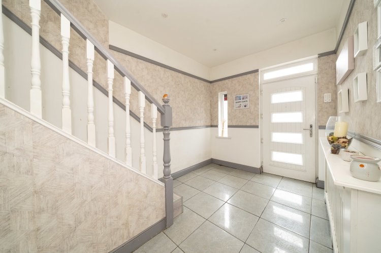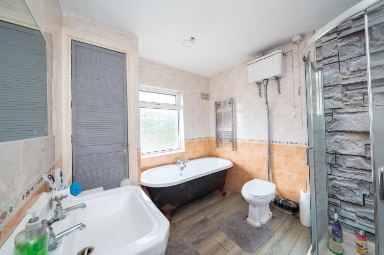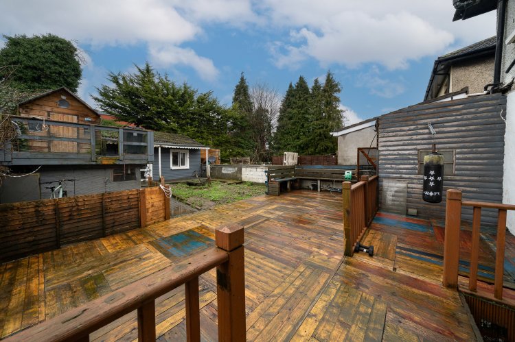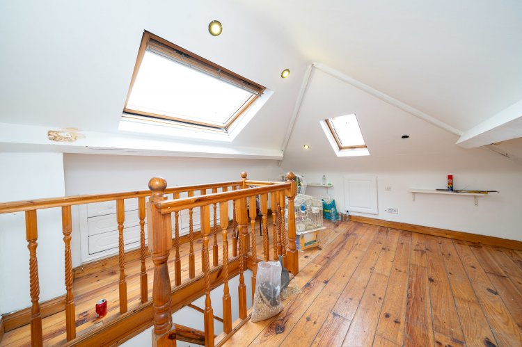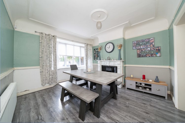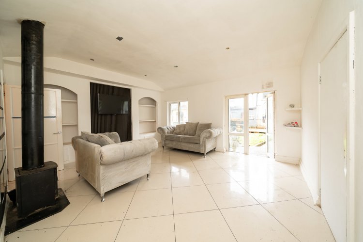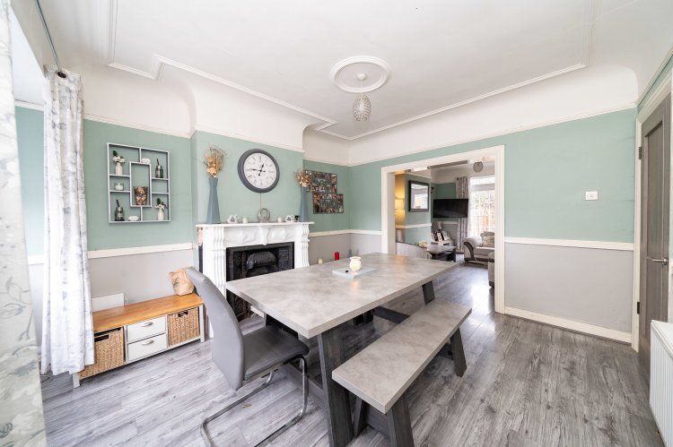 Excellent three bedroom semi detached home with a large back garden and attic conversion. This superb family home enjoys a paved driveway, leading to an attractive facade. The welcoming entrance hall features tiled flooring and provides access to the spacious accommodation throughout. To the left of the entrance, the open plan dining and living room enjoys a charming bay window, feature fireplace, and high ceilings, with laminate flooring extending through the living space. Double doors open from the living area onto a generous rear garden, perfect for outdoor entertaining. The modern kitchen boasts tiled floors, ample counter and storage space, and stylish splashback tiling. An additional room to the side of the property offers the ideal space for a home office or study. Upstairs, there are three well proportioned bedrooms and a family bathroom, complete with a walk in electric shower and a separate bath. The accommodation is further enhanced by a converted attic with a Velux window and extra storage space. No. 18 also benefits from a chalet at the rear of the property, which is fully wired and plumbed.
