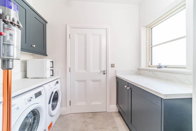 Utility Room 2.58m x 1.52m Tiled flooring, wall and floor units, fully plumbed, window and light fitting,