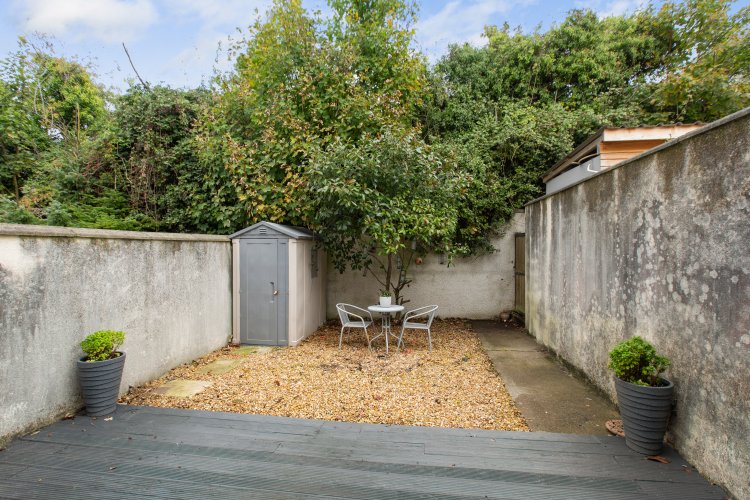 Accommodation briefly comprises an entrance hall, a bright living room with feature fireplace, and an archway leading to a well-fitted and fully equipped kitchen. Off the bedroom corridor are two double bedrooms, a family bathroom, and a hot press with additional storage. The main bedroom opens out to the private, enclosed rear garden, perfect for relaxing or entertaining.