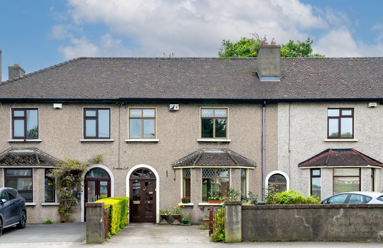 This superb property features a gated driveway and front garden leading to a storm porch with double doors and a tiled floor. The L shaped entrance hall has understairs storage and leads to the living accommodation. To the right of the hallway is a spacious living room with a solid fuel fireplace, a bay window, high ceilings and ornate coving. The dining area is connected to the living room and also enjoys high ceilings, ornate coving and a gas fireplace. The breakfast area boasts a solid fuel fireplace, ornate coving and leads to the kitchen extension and garden room. This light filled area has a tiled floor, splashback tiling, storage room and side access to the front of the property. The amazing south east facing garden is a mix of paving, flower beds and mature trees making it the ideal place to relax & entertain. Upstairs consists of three bedrooms and the family bathroom. The bathroom is currently divided in two and comes with a tiled floor, an electric shower and incorporates the hotpress. Both larger bedrooms have solid wooden floors and ornate fireplaces while the third bedroom has fitted wardrobes. The accommodation is completed by a spacious attic conversion with three Velux windows, eaves storage, fitted wardrobes and wooden floors.