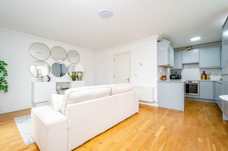 Living Room/Dining 5.4m x 4m Wooden flooring, fitted light, curtains, blinds, gas boiler, thermostat and door leading onto front south facing balcony.