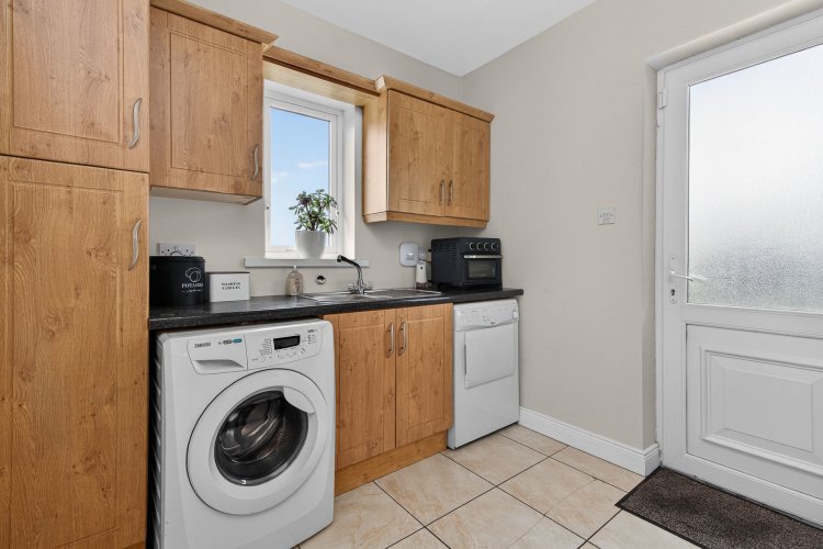 2.50m x 2.50m 8.20ft x 8.20ft | Finished with tiled flooring, fully fitted units complete with wash hand basin and plumbed for washing machine and tumble dryer, extensive fitted units and doors off to the rear. |