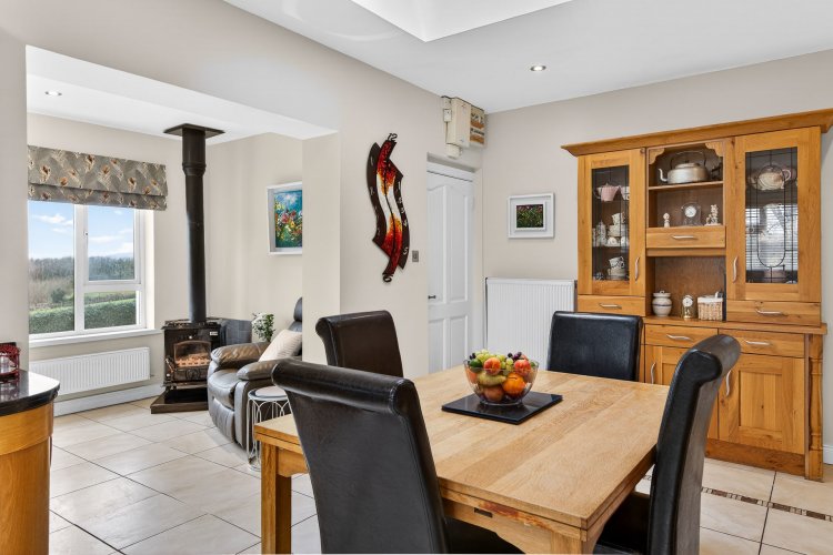 There is a solid fuel stove, stand alone n the corner of this room and the heat from this stove will heat not just this area but right through to the kitchen and dining area also. |
