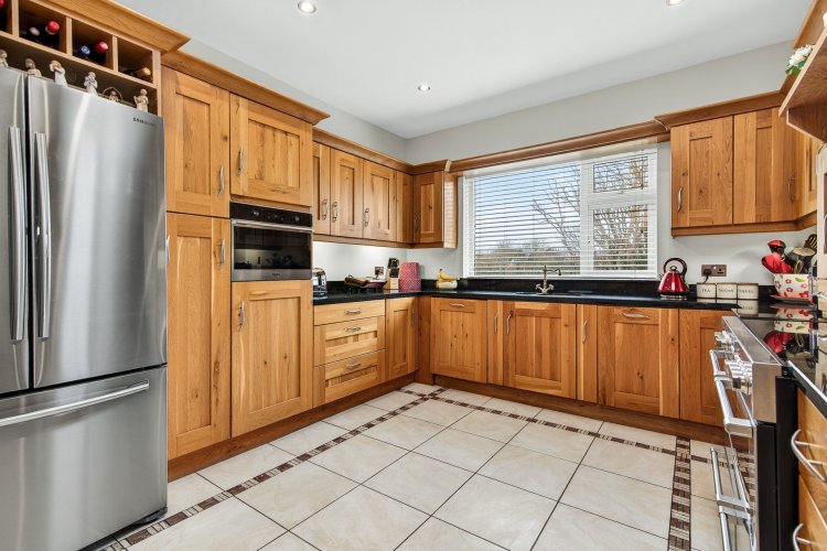 3.70m x 7.20m 12.14ft x 23.62ft | Finished complete with a tiled flooring, fully fitted bespoke solid wood Pipi oak kitchen complete with granite worktops, integrated appliances including american style fridge, oven, hotplate, microwave, dishwasher and there is a large seven ring hob and further double oven complete with hotplate and this area is complete with granite worktops and a granite backsplash behind the large oven hob. This room has a large window at the end of the room and opens through an open arch to an additional living area to the rear.