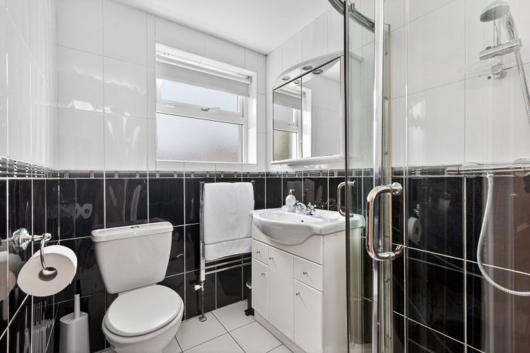 1.60m x 3.00m 5.25ft x 9.84ft | Finished with tiled flooring, part tiled walls and fully tiled around the large shower area. Includes toilet, wash hand basin with a vanity unit and fitted mirror over. |
