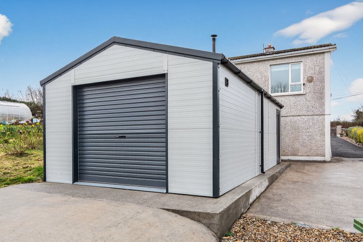 To the rear, a large insulated Steeltech shed offers outstanding versatility, perfect for storage, hobbies, or even a home workspace.