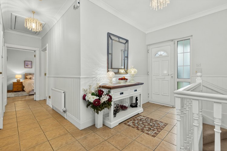 This entire area is finished with a tiled floor, complete with ornate centerpiece and this opens to all living accommodation and additional bedrooms. |