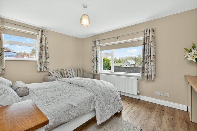 3.70m x 4.30m 12.14ft x 14.11ft | This room is finished with laminate wood flooring and excellent built-in wardrobes and this room is west facing with a large window overlooking the well finished front garden area. |