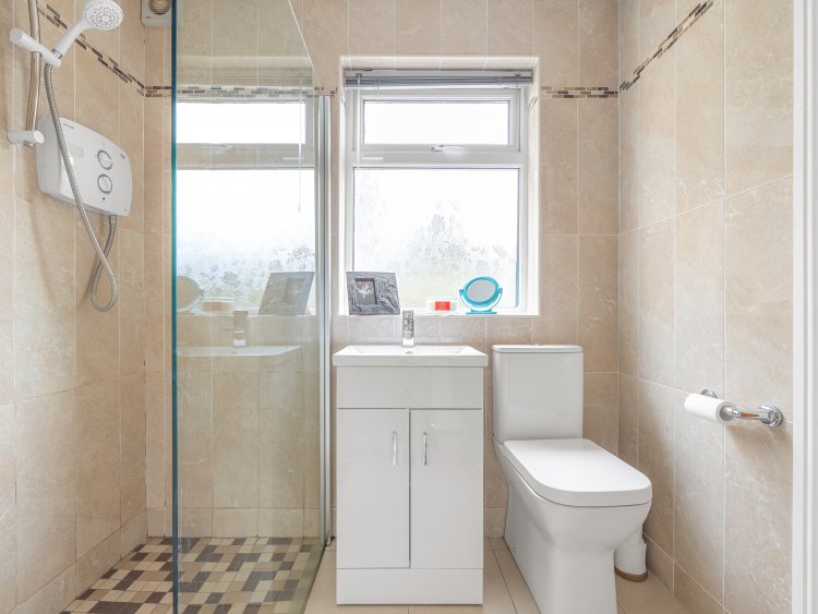 Upstairs, a spacious landing leads to three well-proportioned bedrooms and a large family bathroom. The principal bedroom is a great size, complete with carpeting, built-in wardrobes, and a neatly tiled ensuite. The remaining two bedrooms are also generous in size, offering bright, comfortable spaces. The main bathroom is beautifully tiled and finished to a high standard, providing both style and practicality for everyday family life.