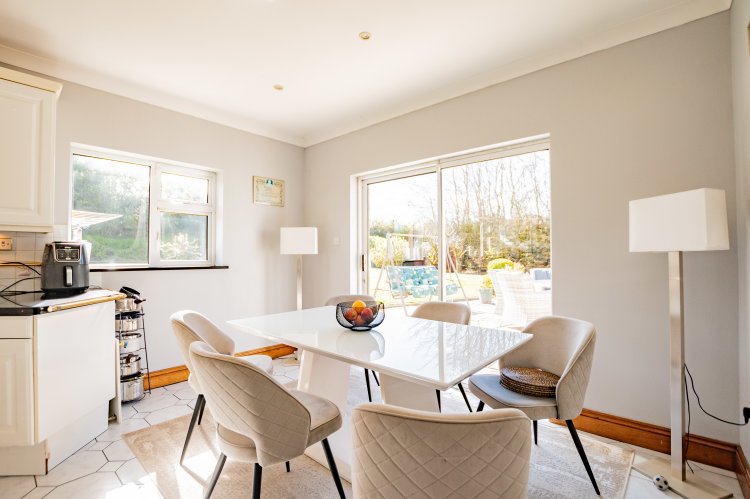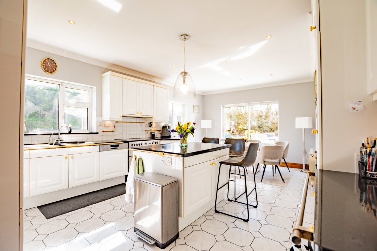 Internally, the accommodation is generously proportioned and exceptionally well-balanced, extending to four spacious bedrooms, two of which benefit from ensuite bathrooms. The principal living accommodation has been designed with both family living and entertaining in mind, comprising a substantial kitchen/dining room fitted with a premium SieMatic kitchen, complete with elegant marble countertops, creating a stylish and functional heart of the home. In addition, there is a formal dining room and an elegant sitting room centred around beautiful marble fireplaces, creating warm and inviting living spaces throughout. The sitting room connects effortlessly to a bright and airy sunroom, overlooking the mature gardens and drawing the outside in.