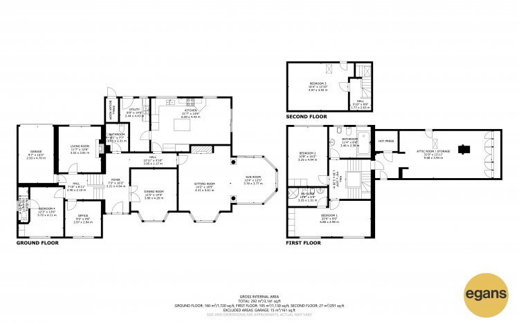 Further accommodation includes a dedicated home office, ideal for modern remote or hybrid working, a main family bathroom, and two additional storage rooms, adding further practicality to this already impressive home.