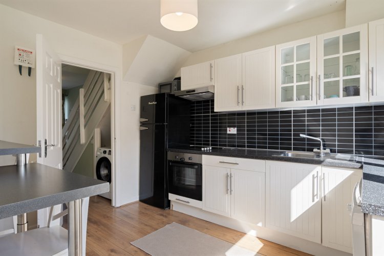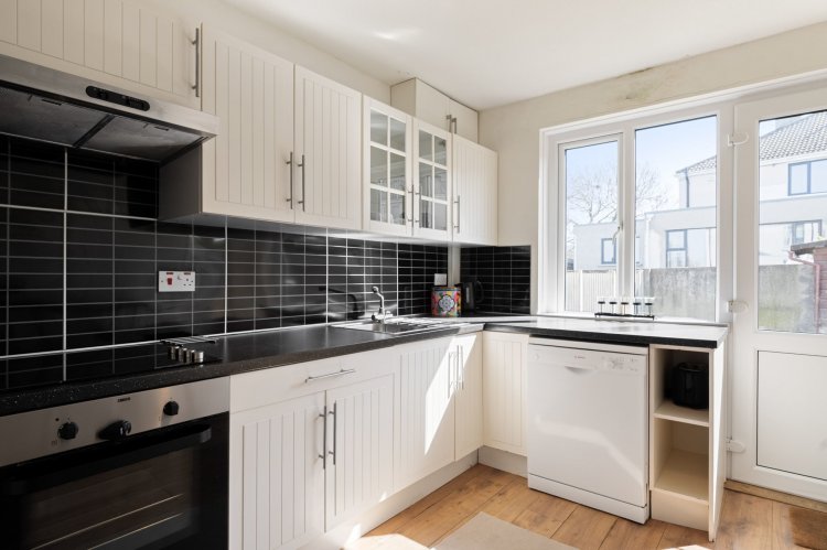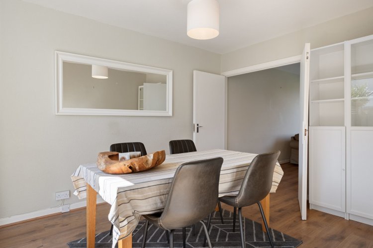 Inside, the home features a bright front living room and a rear dining room with floor-to-ceiling windows that flood the space with natural light while offering views of the gardens. The layout flows effortlessly into a sleek, modern kitchen – fully equipped and ready for daily family life or entertaining.